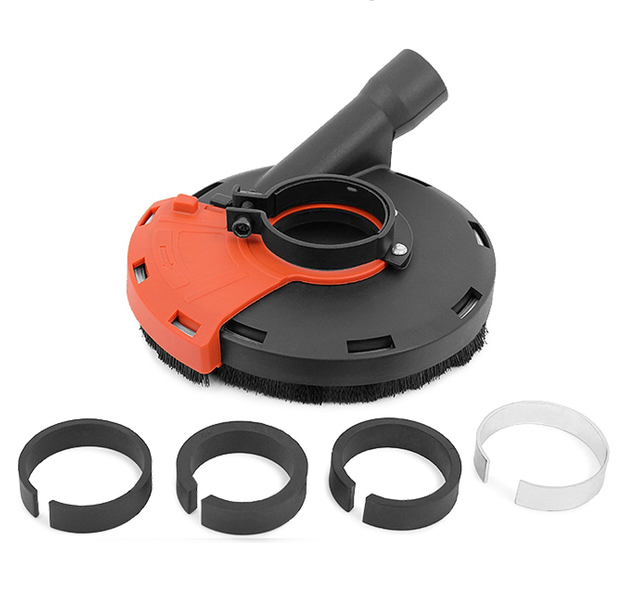 - Крепление кожуха к УШМ осуществляется посредством переходников диаметром 38-50 мм, которые поставляются в комплекте.
