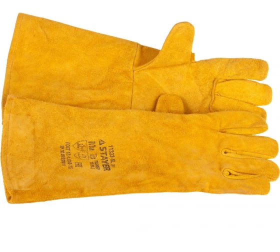 Перчатки Stayer "profi" можно рекомендовать владельцу сварочного аппарата, который нуждается в защитной спецодежде для защиты рук от брызг расплавленного металла, контакта с горячими поверхностями. Спилковые желтые перчатки с подкладкой для сварочных, тяжелых хозяйственных или производственных работ с жестким манжетом имеют длину 400 мм, решая задачу защиты от негативных воздействий не только кистей рук оператора, но и его запястий, а частично и предплечий. Плотные перчатки для тяжелых работ Stayer "profi" эффективно предохраняют руки пользователя не только от искр, но и от механических воздействий - порезов, несильных ударов. За счет наличия тканевой подкладки эти элементы защитной экипировки обеспечивают пользователю удобство во время продолжительной работы. Рассчитанные на многоразовое применение перчатки (2 шт. в комплекте) соответствуют размеру XL (10).