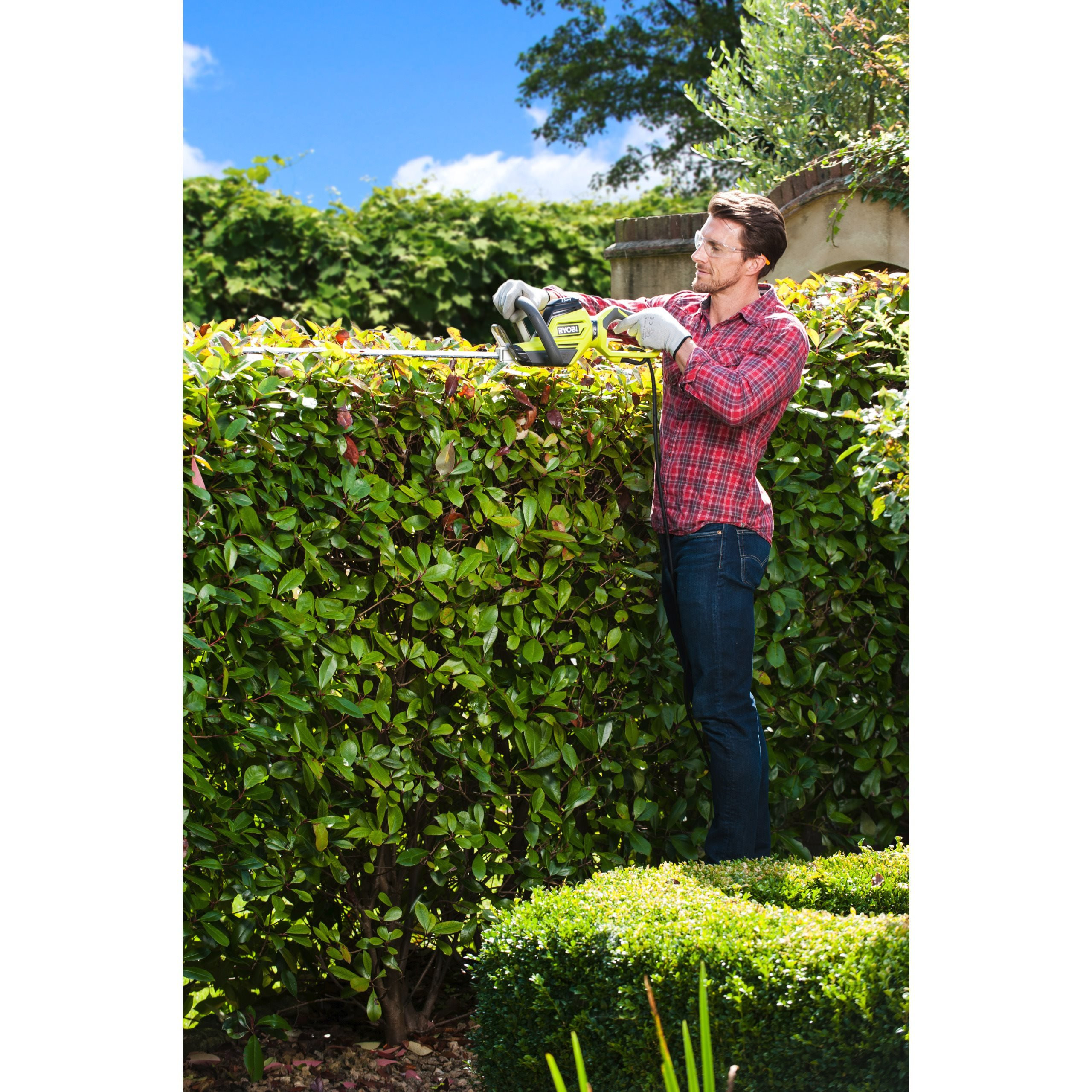 - Насадка HedgeSweep позволяет легко удалять срезанные ветки.
