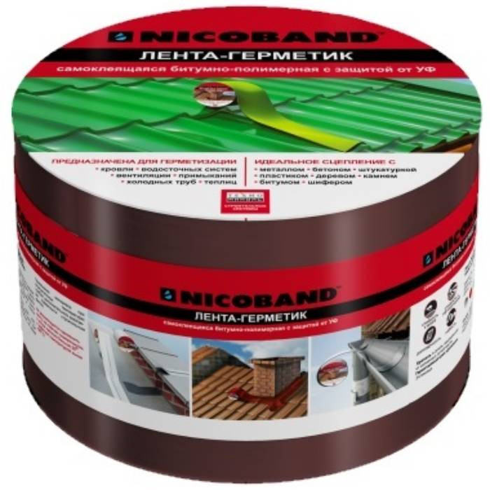 - Простота применения. Лента-герметик Nicoband в применении очень проста и не требует специальных навыков. Благодаря слою битумно-полимерного вяжущего специального состава великолепно выполняет функции герметизации на протяжении всего срока службы (10 лет).