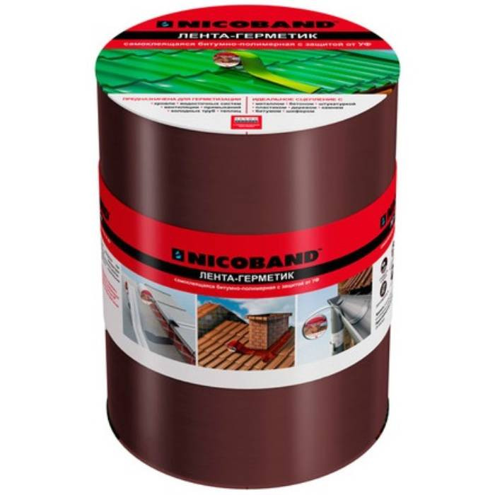 - Простота применения. Лента-герметик Nicoband в применении очень проста и не требует специальных навыков. Благодаря слою битумно-полимерного вяжущего специального состава великолепно выполняет функции герметизации на протяжении всего срока службы (10 лет).
