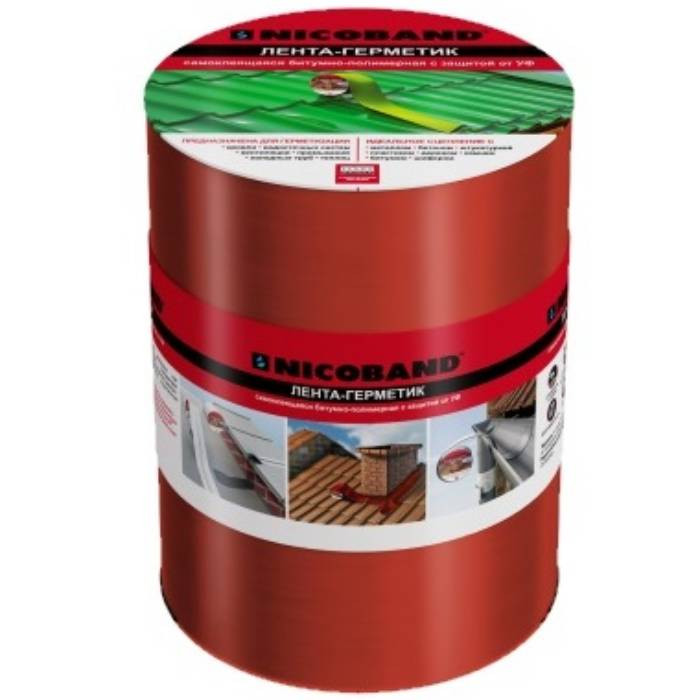 - Простота применения. Лента-герметик Nicoband в применении очень проста и не требует специальных навыков. Благодаря слою битумно-полимерного вяжущего специального состава великолепно выполняет функции герметизации на протяжении всего срока службы (10 лет).
