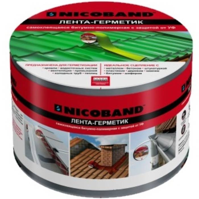 - простота применения. Лента-герметик Nicoband в применении очень проста и не требует специальных навыков. Благодаря слою битумно-полимерного вяжущего специального состава великолепно выполняет функции герметизации на протяжении всего срока службы (10 лет).