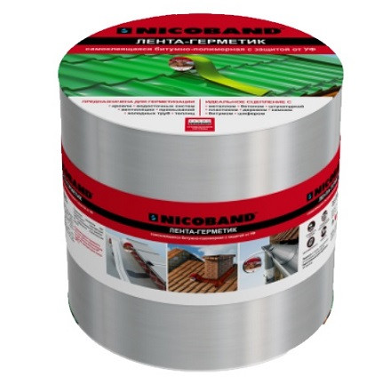 - Простота применения. Лента-герметик Nicoband в применении очень проста и не требует специальных навыков. Благодаря слою битумно-полимерного вяжущего специального состава великолепно выполняет функции герметизации на протяжении всего срока службы (10 лет).