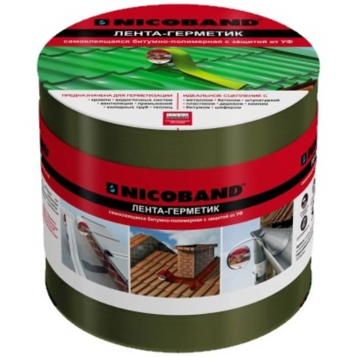 - Простота применения. Лента-герметик Nicoband в применении очень проста и не требует специальных навыков. Благодаря слою битумно-полимерного вяжущего специального состава великолепно выполняет функции герметизации на протяжении всего срока службы (10 лет).