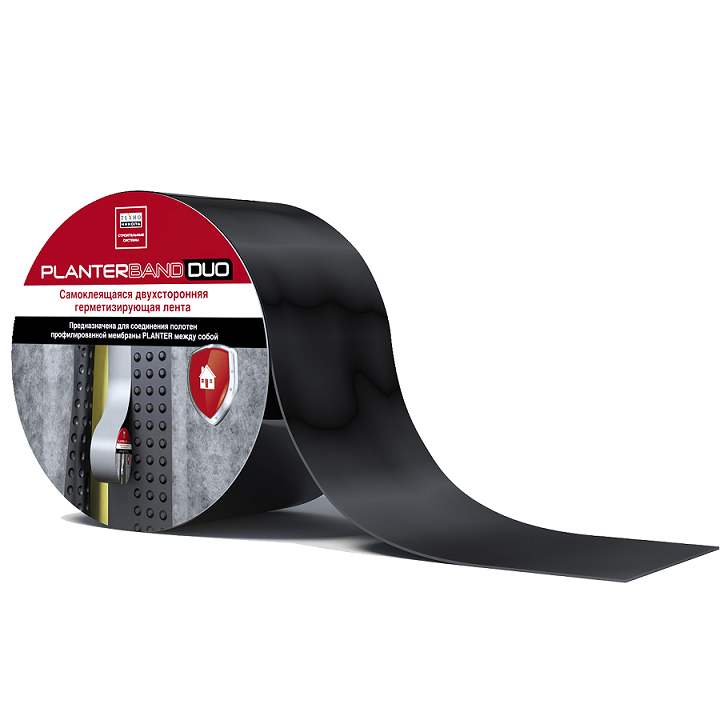 Лента герметизирующая Технониколь Planterband Duo двухсторонняя самоклеящаяся 10000х50 мм - это герметизирующая и гидроизолирующая битумно-полимерная лента. Применяется для скрепления нахлестов профилированных мембран Planter с плоским краем. Planterband Duo получают путем одностороннего нанесения на антиадгезионную пленку самоклеящегося битумно-полимерного вяжущего, состоящего из битума, полимерного модификатора и специальных адгезионных добавок. В качестве защитного слоя используют полимерную пленку.