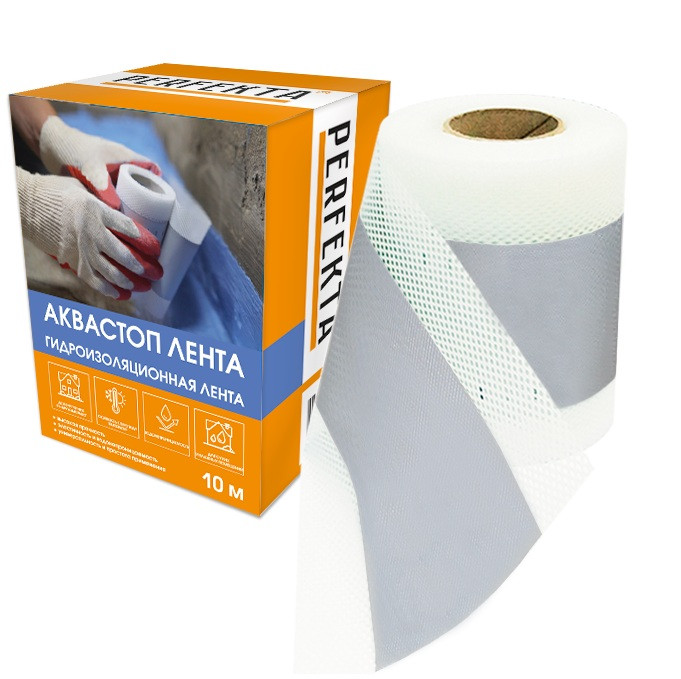 Лента гидроизоляционная Perfekta Аквастоп Лента 10000х120 мм - предназначена для гидроизоляции углов примыкания «стена–стена» и «пол–стена» на основаниях, при устройстве гидроизоляционного покрытия, а также может применяться для герметизации деформационных и компенсационных швов в основаниях.