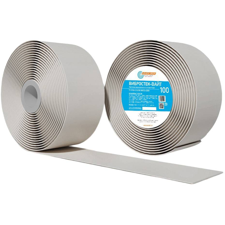 Лента звукоизоляционная Вибростек-Вайт 100 100х4 мм 30 м - применяется в качестве прокладочного материала в строительных конструкциях при монтаже панельных систем ЗИПС, ЗИПС-ПОЛ, каркасных звукоизоляционных перегородок, облицовок и подвесных потолков. Также применяется в качестве кромочного слоя в конструкциях звукоизолирующих плавающих полов.