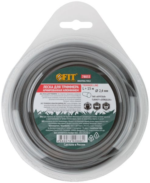 Леска для садовых триммеров Fit 78033 армированная алюминием круглая 2,4 мм 15 м