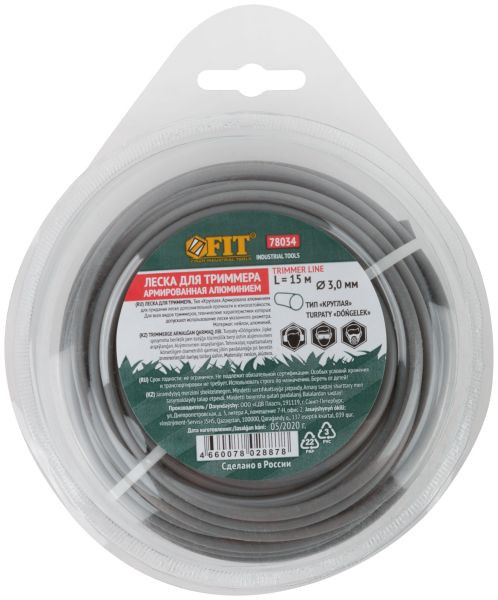 Леска для садовых триммеров Fit 78034 армированная алюминием круглая 3 мм 15 м