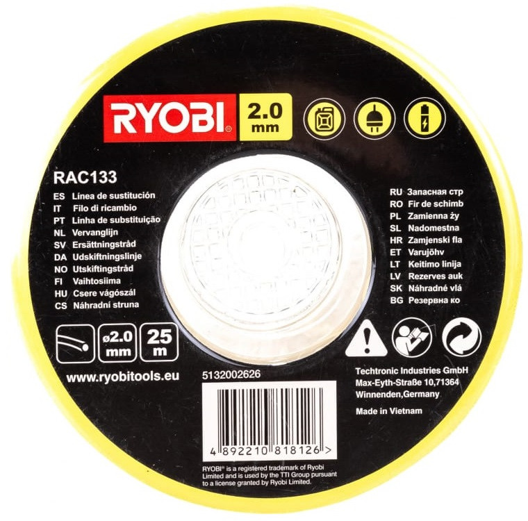 Леска для триммера Ryobi RAC133 5132002626 2 мм 25 м используется при работе триммерами, выполняя роль режущего элемента. Леска заправляется в специальную катушку, из которой подается в процессе работы.
