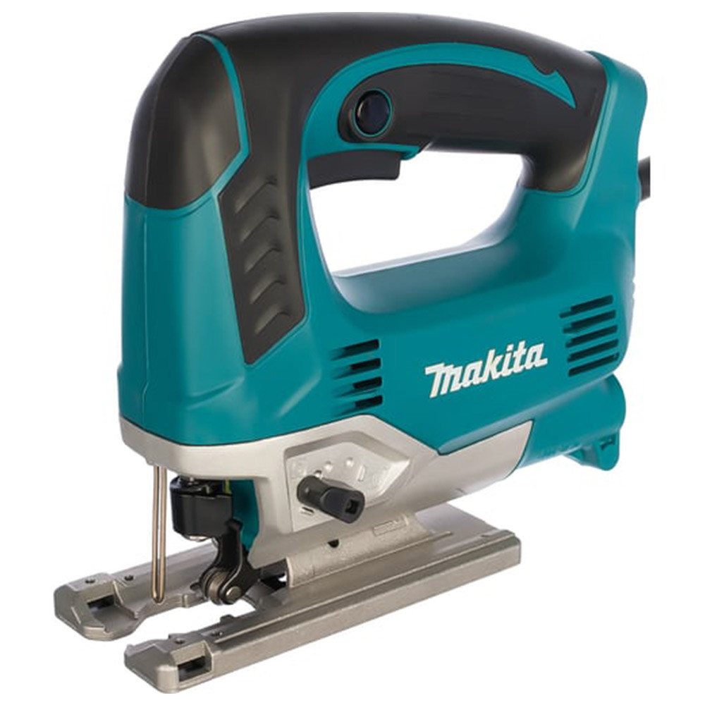Лобзик Makita JV0600K предназначен для выполнения как прямых, так и фигурных резов. Его удобный и эргономичный корпус, а также специальные нескользящие вставки на ручках значительно уменьшают утомляемость, что позволяет работать длительное время без особых усилий. В процессе работы можно легко переключаться между тремя режимами маятникового хода. Подошва инструмента может наклоняться до 45 градусов в обе стороны.