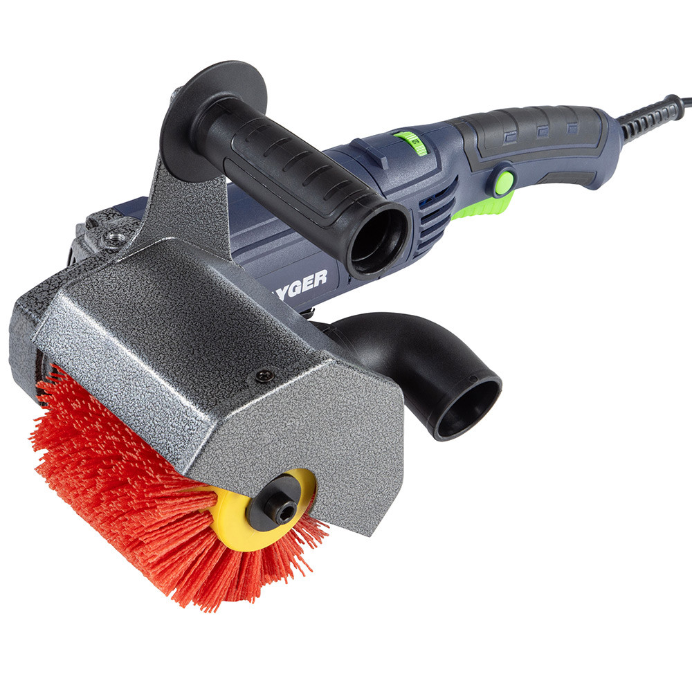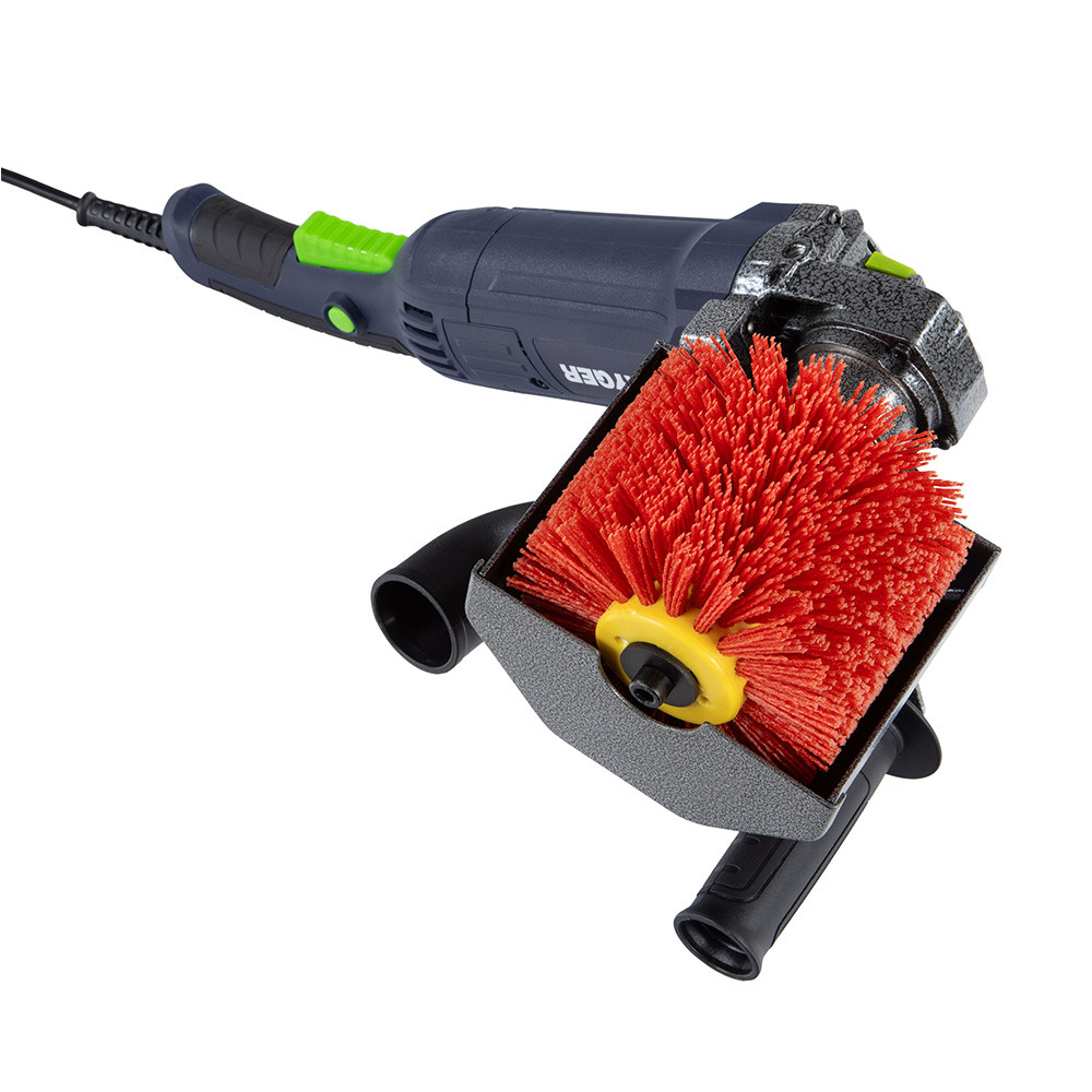 - Большая площадь шлифщетки прикрыта защитным кожухом, который предотвращает распространение пыли из зоны обработки.