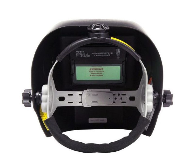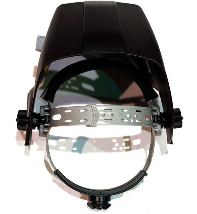- Удобное, надежное и регулируемое крепление фиксирует маску на голове, что позволяет освободить обе руки сварщика.