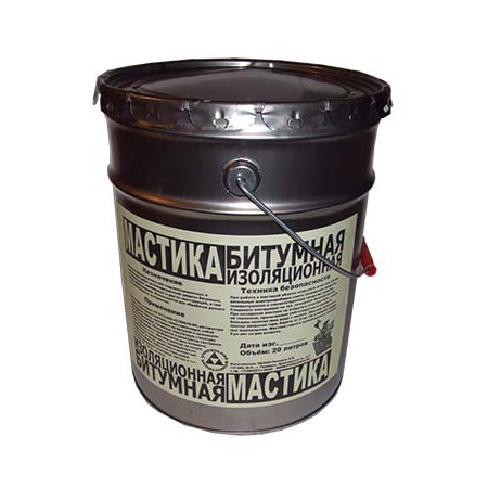 Мастика битумная изоляционная, холодного применения для обмазочной гидроизоляции представляет собой смесь нефтяного битума или дёгтя, с минеральным наполнителем, в состав битумной мастики входят: известняк, доломит, мел, цемент, отходы от топлива, а также асбест, минеральная вата и другие наполнители. Мастика битумная для гидроизоляции является жидкой вяжущей однородной массой, которая после нанесения, при отвердевании становится покрытием, имеющим монолитную поверхность, а наполнители, входящие в её состав, концентрируются на поверхности масла, при этом повышается теплостойкость и твёрдость мастики, кроме того, уменьшается расход битума или дёгтя; волокнистые наполнители, армируя материал, увеличивают его сопротивление изгибу.