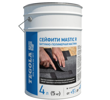 Мастика битумно-полимерная Tegola Safety Mastic - клеевая мастика холодного применения для приклеивания гибкой черепицы и рулонных битумных материалов (в том числе к кирпичным, бетонным, металлическим, деревянным и прочим поверхностям).