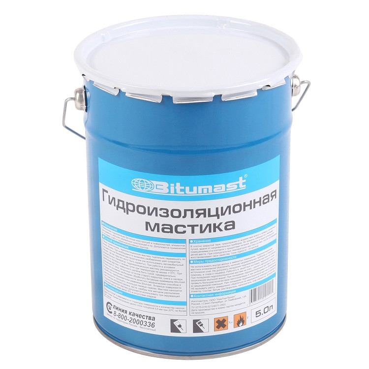 Не использовать мастику внутри жилых и замкнутых помещений. Гидроизоляционная мастика огнеопасна! Работы с гидроизоляционной мастикой проводить на открытом воздухе, не курить. Исключить наличие нагревательных приборов и открытых источников огня.