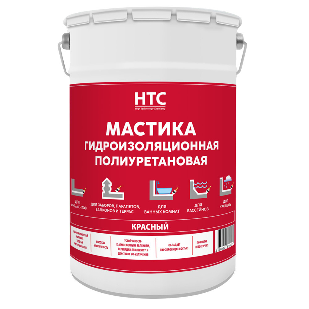 Мастика гидроизоляционная полиуретановая HTC представляет собой однокомпонентный материал красного цвета для создания бесшовного защитного покрытия. Состав обеспечивает максимальную защиту в один слой толщиной до 1,5 мм и предназначен для эксплуатации в широком диапазоне температур.