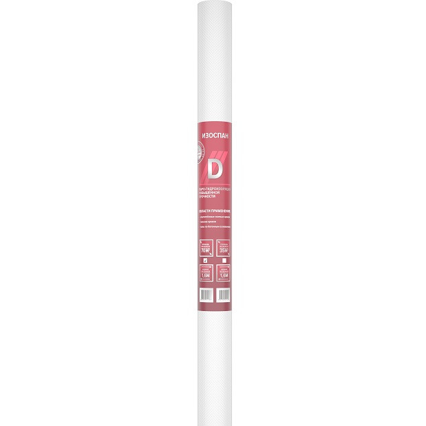 Изоспан D представляет собой двухслойный материал, выполненный из высокопрочного полипропиленового тканого полотна и полипропиленовой плёнки. Материал обладает высоким сопротивлением паропроницанию, водоупорностью и повышенной прочностью, что позволяет применять его в качестве: