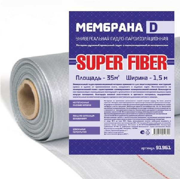 Мембрана гидро-пароизоляционная Super Fiber D 91961 универсальная 1,5 м является современным изоляционным материалом, который на сегодняшний день завоевал рынок строительных мембран своей функциональностью, выгодной ценой, а также широким спектром применения. Материал изготавливается из полипропилена высшего сорта на современном оборудовании. В строительстве изоляционная мембрана «SuperFiber» применяется в качестве гидропароизоляции, ветро и пароизоляции. Основной функцией данного материала является комплексная защита сооружений от конденсата, ветра и влаги. Применяя данный материал, Вы увеличиваете срок службы строительных конструкций и утеплителя.