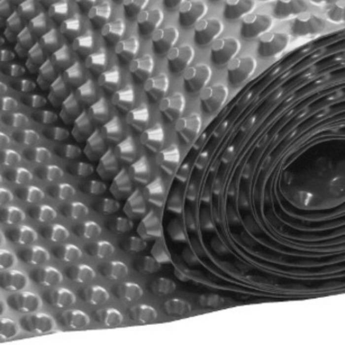 Профилированная мембрана Технониколь Planter Standard представляет собой полотно из полиэтилена высокой плотности (HPDE) с отформованными округлыми выступами высотой 8 мм. Основной ее функцией является защита гидроизоляционного слоя и организация пристенного дренажа.