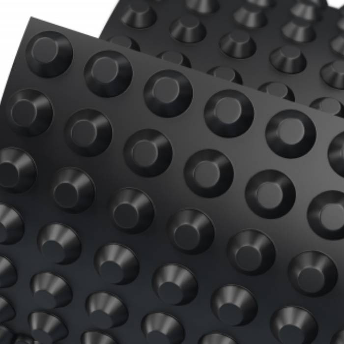 Профилированная мембрана Технониколь Planter Standard представляет собой полотно из полиэтилена высокой плотности (HPDE) с отформованными округлыми выступами высотой 8 мм. Основной ее функцией является защита гидроизоляционного слоя и организация пристенного дренажа.