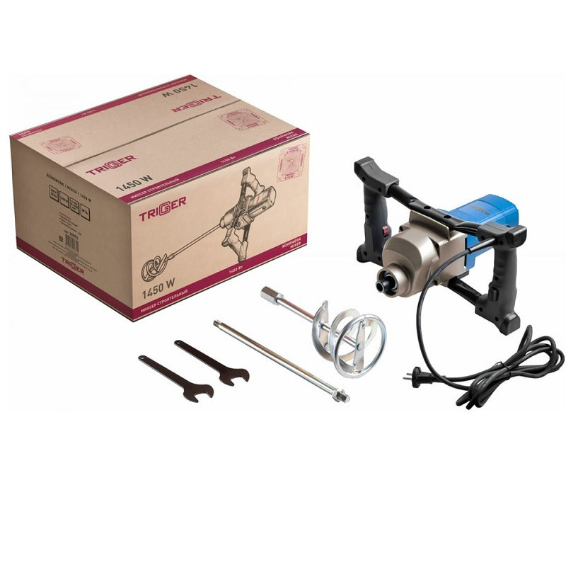 Миксер строительный Trigger 20052 предназначен для работы на стройплощадке. Позволяет перемешивать различные строительные растворы: краску, пастообразный клей, штукатурку и аналогичные продукты. Электронная регулировка скорости позволяет подобрать оптимальный режим для каждого материала. Плавный пуск снижает нагрузку на двигатель при запуске миксера, чем продлевает срок его службы. Рукоятки имеют увеличенный размер для максимального удобства оператора. Максимальный объем перемешивания смесей составляет 160 л (для легких) и 80 л (для густых).