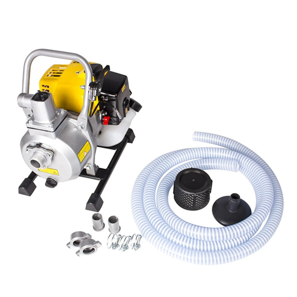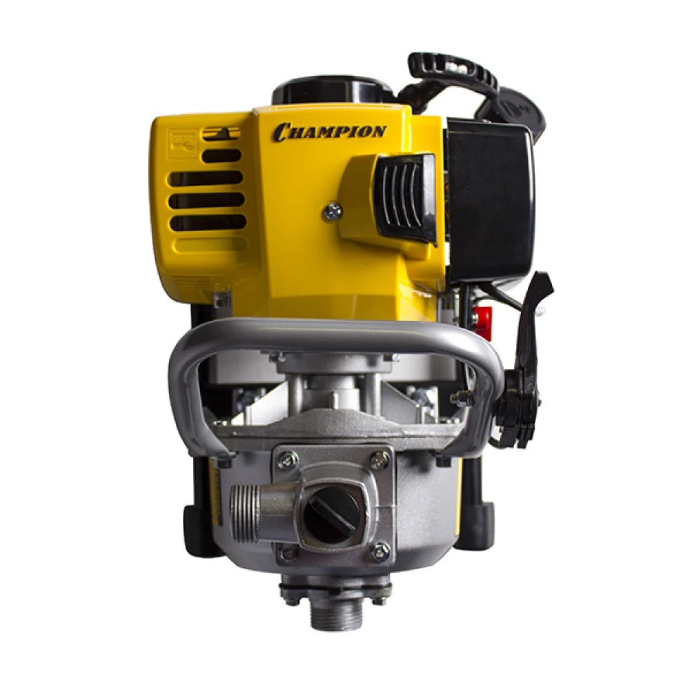 Мотопомпа Champion GP26-II обладает хорошей производительностью, что подтверждается мощностью двухтактного двигателя 130 литров в минуту. Двигатель агрегата запускается с помощью ручного стартера, мотопомпа стабильно работает долгое время. Несмотря на меньший моторесурс, чем у дизельного устройства, бензиновый имеет более доступную цену.