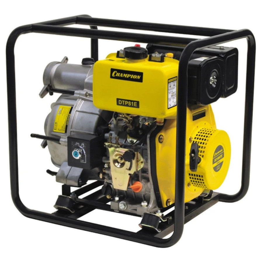 Мотопомпа Champion DTP81E - предназначенная для перекачивания чистой, среднезагрязненной и сильнозагрязненной воды с твердыми частицами диаметром до 25 мм, илом и камнями (грязевая помпа). Мотопомпа DTP81E перекачивает жидкость с максимальной производительностью 1000 л/мин., с максимальным напором 26 м. Силовым агрегатом мотопомпы Champion DTP81E является надежный 4-тактный дизельный двигатель мощностью 5.4 л.с. Запуск помпы дизельной осуществляется с помощью электростартера, либо ручного стартера. Прочная стальная рама обеспечивает более легкий перенос мотопомпы Champion DTP81E для грязной воды и ее установку на другое рабочее место.