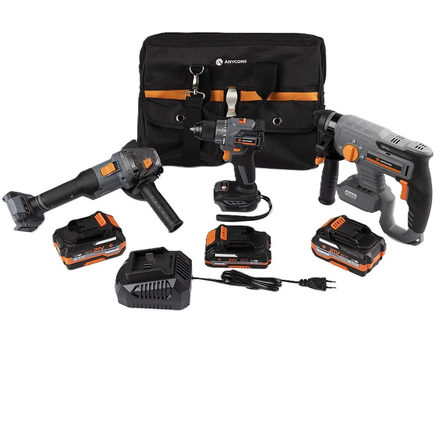 Набор инструментов Anycons AC-ST301 3 предмета базовый набор профессиональных аккумуляторных, бесщеточных инструментов Anycons позволяет выполнить весь необходимый спектр работ. Набор поставляется в удобной переносной сумке, в которой можно хранить инструмент, а так же все необходимые расходные материалы. Сбалансированное решение для профессионалов на выгодных условиях. В набор входит 3 инструмента, 3 аккумулятора, зарядное устройство, сумка для хранения инструмента и расходных материалов.