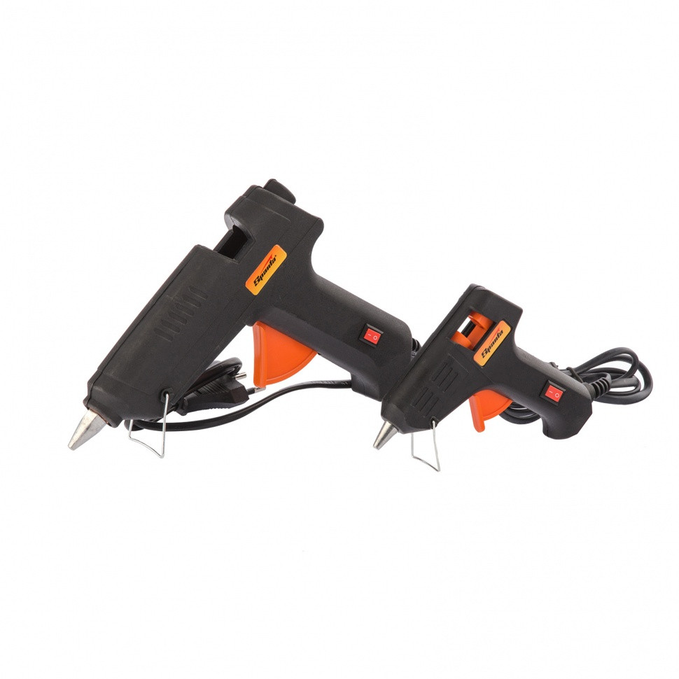 Набор клеевых пистолетов с выключателями Sparta 93034, 7/11 мм, 20/100 Вт, 3/8 г./мин., в кейсе, пригодится при проведении несложных бытовых работ: склеивания бумаги, дерева, пластика и других материалов. Набор включает в себя 2 пистолета производительностью 3 и 8 г/мин. Он станет незаменимым помощником для частных мастеров, которые занимаются мелким ремонтом, упаковкой, сборкой различных моделей и рукоделием. Время нагрева до максимальной температуры не превышает 5,5 минут.