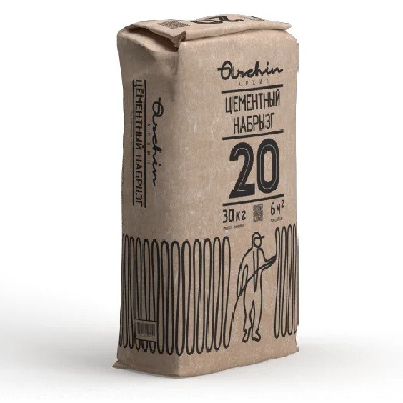 Набрызг цементный Archin 20 серый 30 кг сухая строительная смесь на цементном вяжущем, предназначенная для предварительной обработки гладких и/или невпитывающих оснований (бетон, камень, кирпичная кладка и пр.) перед нанесением цементных штукатурок (например, Archin 21 и Archin 21*). Набрызг создает шероховатую поверхность, препятствует сползанию слоя штукатурного раствора, повышает прочность сцепления штукатурки с основанием. Подходит для механизированного и ручного нанесения.