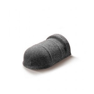 Наконечник полукруглого конька композитной черепицы Metrotile серый применяется чаще всего на «вальмовых» кровлях, имеющих «диагональные» коньки» в качестве завершающего и декоративного элемента. Наконечник придает коньку законченную округлую форму.