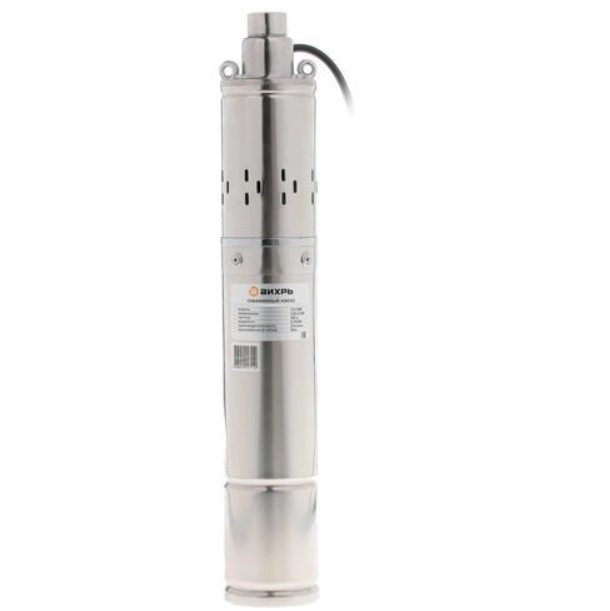 Насос скважинный Вихрь СН-90B - предназначен для подачи воды в бытовых условиях из скважин, могут использоваться также для подачи воды из шахтных колодцев, резервуаров и открытых водоемов для полива садов и огородов. По степени защиты от поражения электрическим током электронасос относится к погружным насосам класса IPX8. При этом расстояние от дна скважины до насоса не должно быть менее 0,6 метра. Основными преимуществами этого насоса являются высокая производительность и надежность. Насос относится к вихревому типу, основным его преимуществом является создание высокого давления при малой подаче воды, поэтому насос лучше всего использовать для подачи воды из малодебитных скважин.