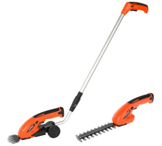 Ножницы-кусторез аккумуляторные с удлиненной ручкой Patriot СSH372 250205370 способны беспрерывно работать в течение 20 минут, подстригать газонную траву, кустарники и вьющиеся растений. Удлинительная ручка с органами управления позволяет работать, не наклоняясь. Инструмент не выделяет вредные выхлопы. Литий-ионный аккумулятор характеризуется отсутствием эффекта памяти и саморазряда. В комплект входят две насадки: одна - для стрижки травы, другая - для придания формы кустам.