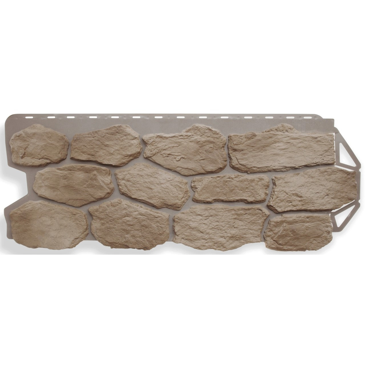 Фактура «Бутового камня» настолько приближена к натуральным материалам, что невозможно отличить искусственные образцы от настоящих, а цветовая гамма позволит создать индивидуальный облик вашего дома. Панели реалистично повторяют цвет и фактуру натуральных материалов. С расстояния нескольких метров их не отличить от камня. Неровная фактура со скошенными углами позволяет добиться максимально естественной формы камня. Размер панели подбирается таким образом, чтобы избежать ощущения мозаичности. Это позволяет добиться естественного рисунка кирпичной или каменной кладки. Облицовка оснащена специально разработанными замками - благодаря этому они легко монтируется и выдерживает значительные нагрузки.