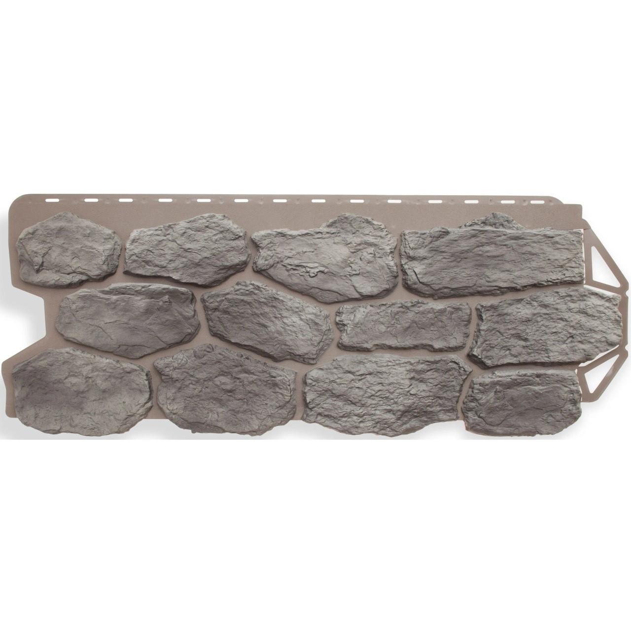 Фактура «Бутового камня» настолько приближена к натуральным материалам, что невозможно отличить искусственные образцы от настоящих, а цветовая гамма позволит создать индивидуальный облик вашего дома. Панели реалистично повторяют цвет и фактуру натуральных материалов. С расстояния нескольких метров их не отличить от камня. Неровная фактура со скошенными углами позволяет добиться максимально естественной формы камня. Размер панели подбирается таким образом, чтобы избежать ощущения мозаичности. Это позволяет добиться естественного рисунка кирпичной или каменной кладки. Облицовка оснащена специально разработанными замками - благодаря этому они легко монтируется и выдерживает значительные нагрузки.