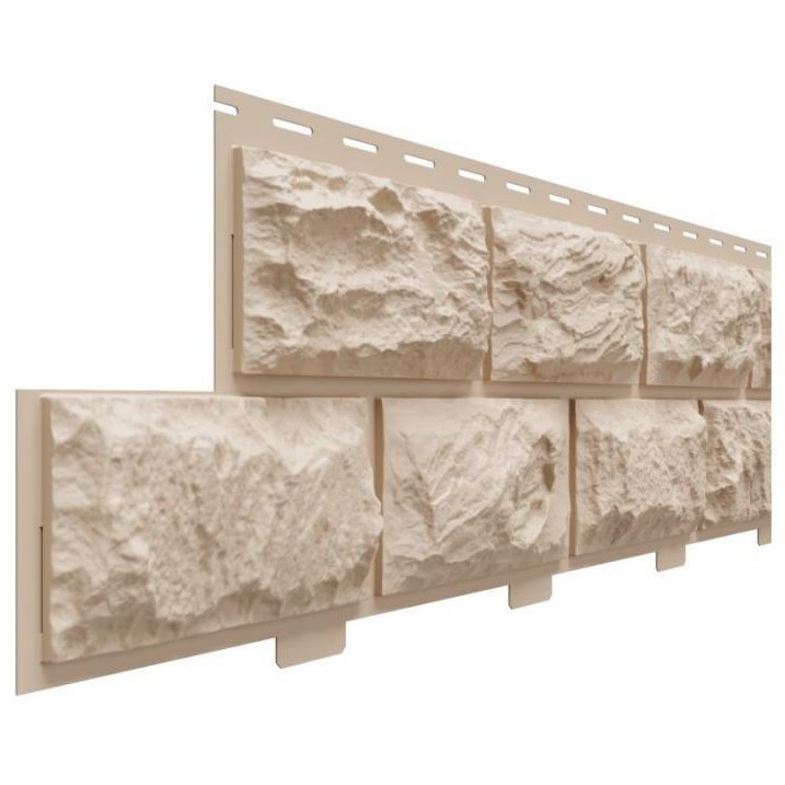 Фактура поверхности очень похожа на кладку из грубо обработанных гранитных блоков, уникально повторяющих облик стены, выложенной из натуральной скальной породы. Высота рельефа рисунка достигает 15 мм. Этот сайдинг не только сочетает в себе все эстетические и эксплуатационные преимущества виниловых отделочных панелей, но и отличается доступной ценой. Таким сайдингом можно оформить не только цоколь вашего дома, но и весь фасад.