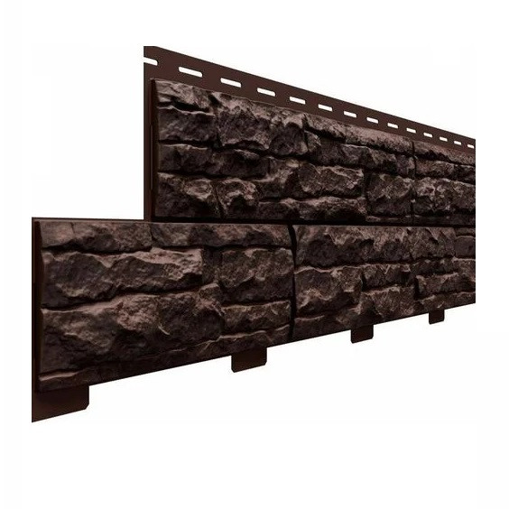 Панель фасадная Доломит Скалистый риф Люкс Гавана 2000х210 мм - вентилируемая декоративная панель, имитирующая натуральный природный камень сланец, который славится своей красотой. Этот сайдинг не только сочетает в себе все эстетические и эксплуатационные преимущества виниловых отделочных панелей, но и отличается доступной ценой. Им можно оформить не только цоколь вашего дома, но и весь фасад.