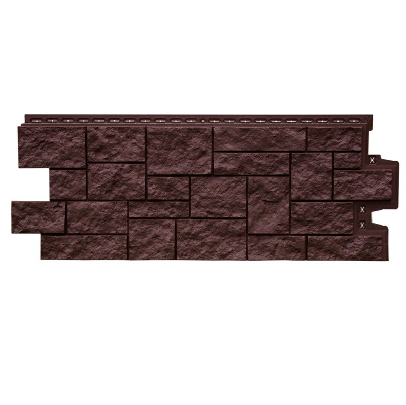 Панель фасадная Grand Line Classic Дикий камень шоколадный 1110х417 мм - осколки природного камня с рваными краями и неровной поверхностью. Фасадные панели Дикий камень коллекции Classic (Классика) - окрашены в массе со швом в тон основной панели.
