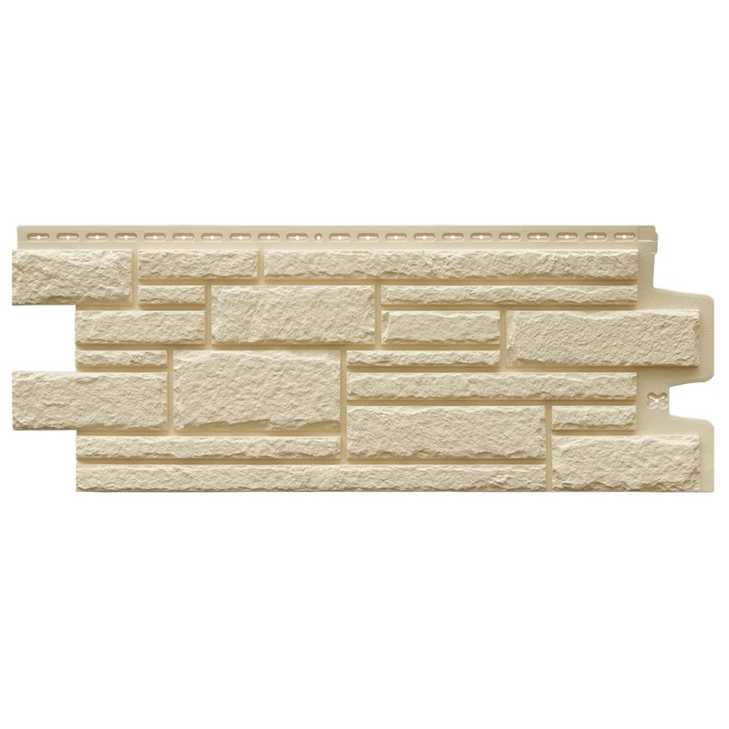 Панель фасадная Grand Line Classic Камелот бежевый 1107х424 мм - рельефная кладка разноформатных камней, повторяющая облик средневекового замка. Фасадные панели Камелот коллекции Classic (Классика) окрашены в массе со швом в тон основной панели.