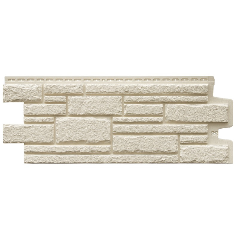 Панель фасадная Grand Line Classic Камелот молочный 1107х424 мм - рельефная кладка разноформатных камней, повторяющая облик средневекового замка. Фасадные панели Камелот коллекции Classic (Классика) окрашены в массе со швом в тон основной панели.