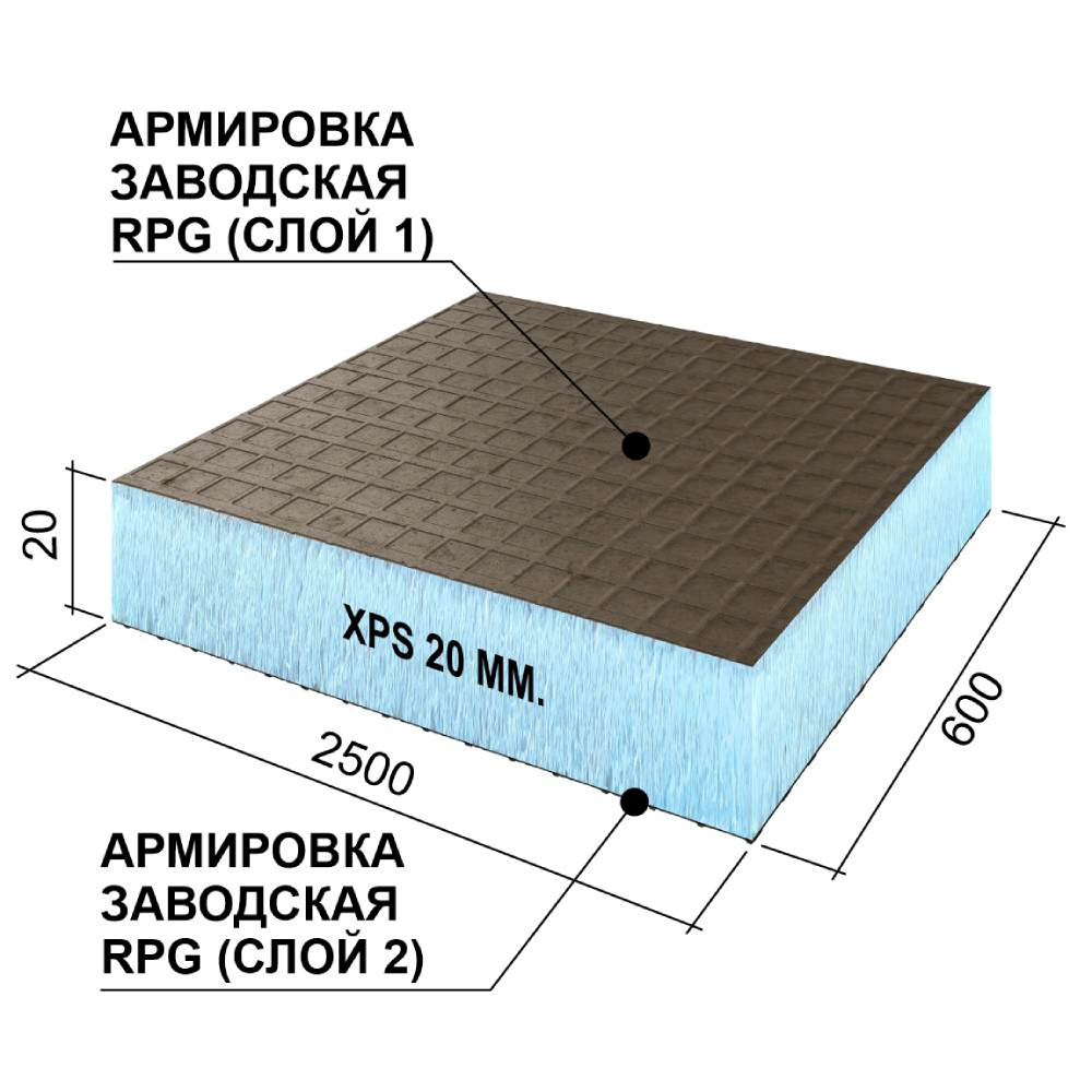 Панель Ruspanel RPG Basic на основе экструдированного пенополистирола двухсторонняя 2500х600х20 мм