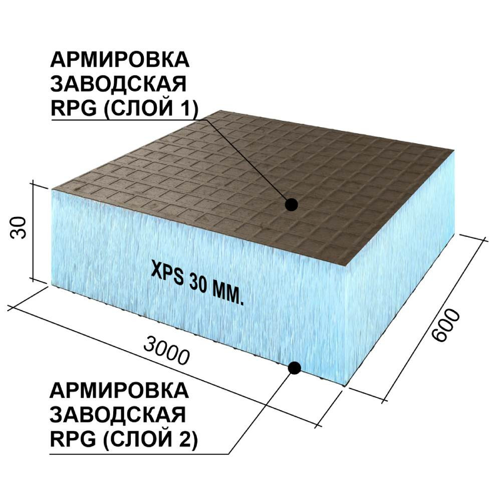 Панель Ruspanel RPG Basic на основе экструдированного пенополистирола двухсторонняя 3000х600х30 мм