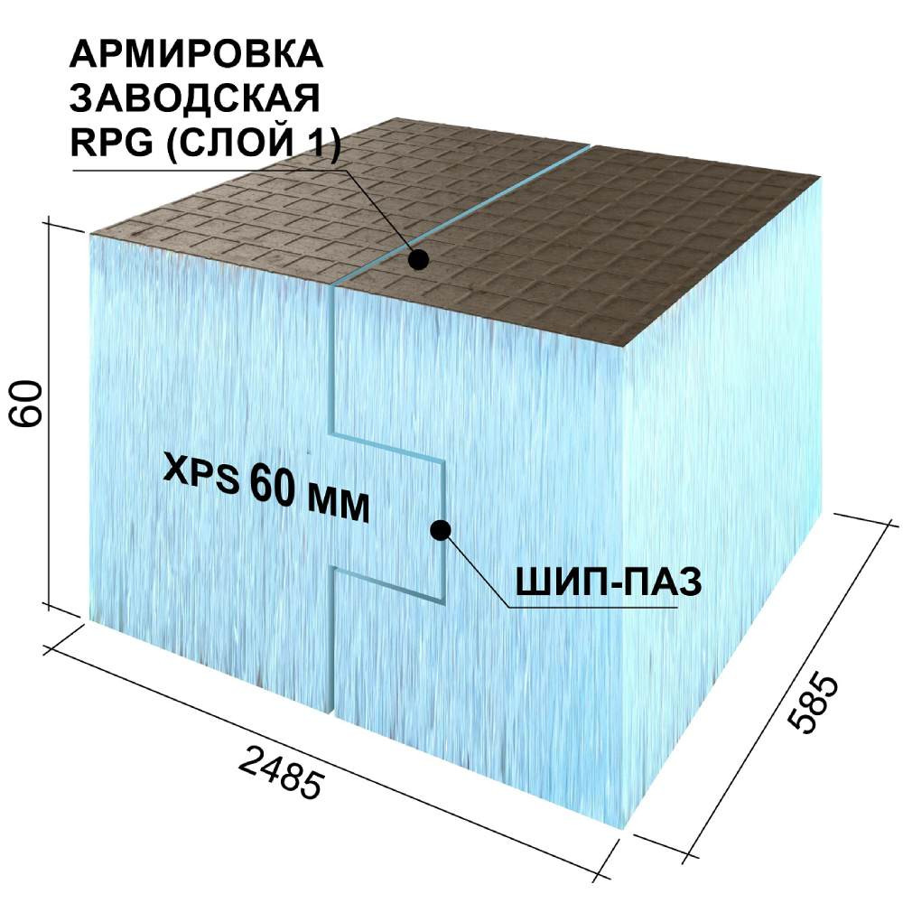 Панель Ruspanel RPG Basic на основе экструдированного пенополистирола H односторонняя 2485х585х60 мм