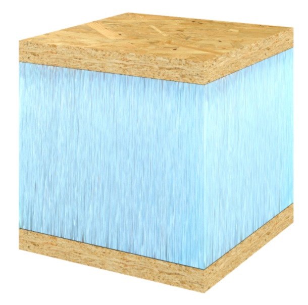 Слой СМЛ или ОСБ придает конструкции плоскостную жесткость и подготовку под дальнейшие отделочные работы. Температурный диапазон эксплуатации сэндвича от -50 до +75 *С может применяться для внутренней, наружной и влажной зоны.