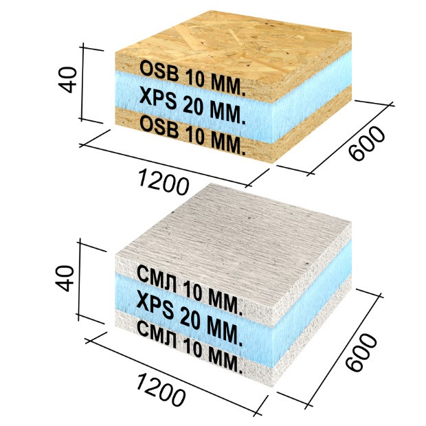 Панель Ruspanel RPG Sandwich SML+XPS+SML 1200х600х40 мм необходимо применять для создания надежного, изоляционного основания на каркасных конструкциях с готовностью под финишную отделку. Это конструкция из экструдированного полистирола XPS (изоляционный материал) + СМЛ (стекломагниевый лист) или ОСБ (ориентированно-стружечная плита).