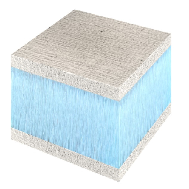 Слой СМЛ или ОСБ придает конструкции плоскостную жесткость и подготовку под дальнейшие отделочные работы. Температурный диапазон эксплуатации сэндвича от -50 до +75 С может применяться для внутренней, наружной и влажной зоны.