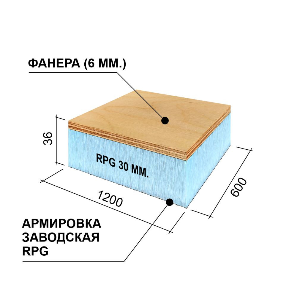 Панель тепло-звукоизоляционная Ruspanel RPG Sandwich фанера+RPG 1200х600х36 мм односторонняя