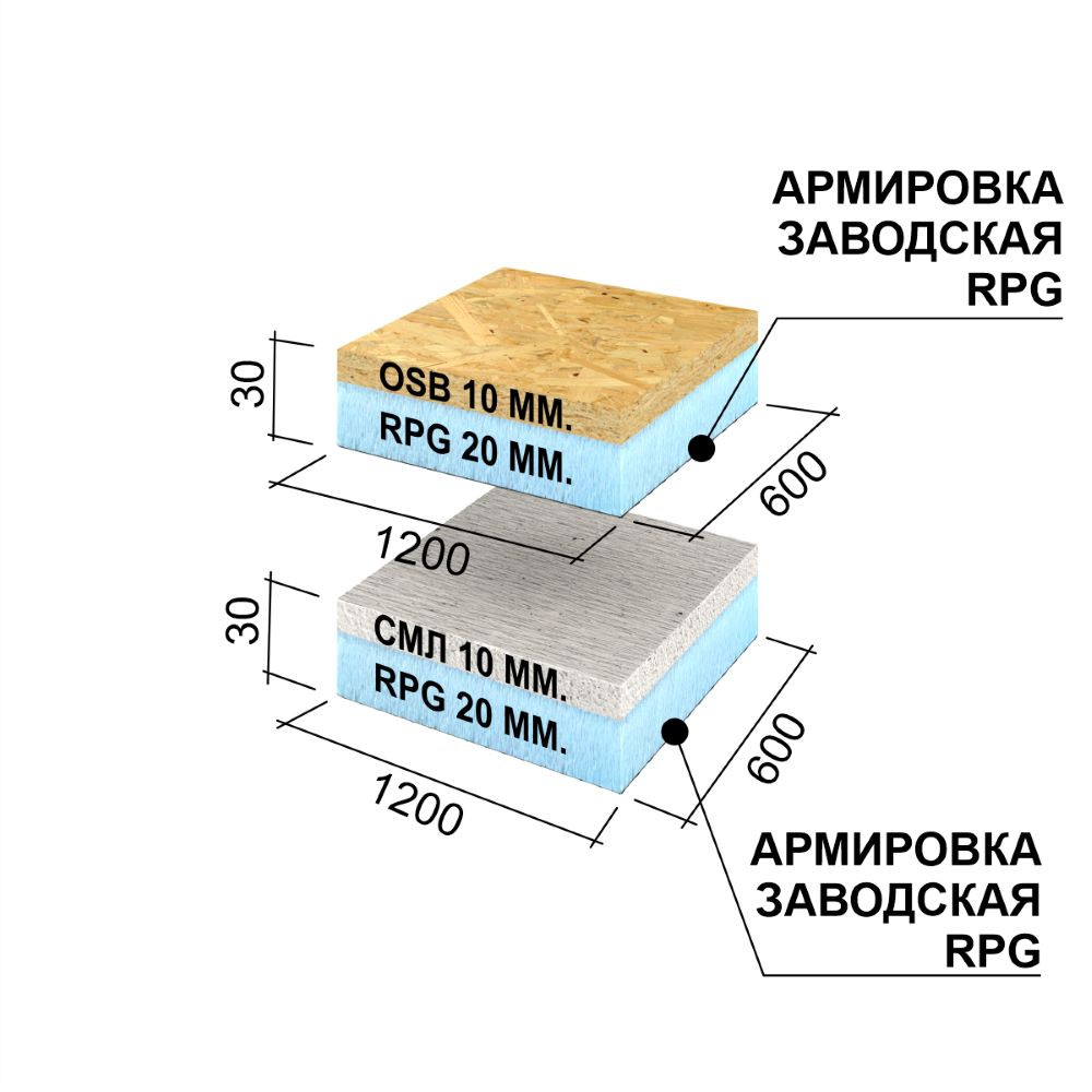 Сэндвич РПГ необходимо применять для создания надежного, изоляционного основания на каркасных конструкциях с готовностью под финишную отделку. Сэндвич РПГ это конструкция из экструдированного полистирола XPS (изоляционный материал) + СМЛ (стекломагниевый лист) или ОСБ (ориентированно-стружечная плита).